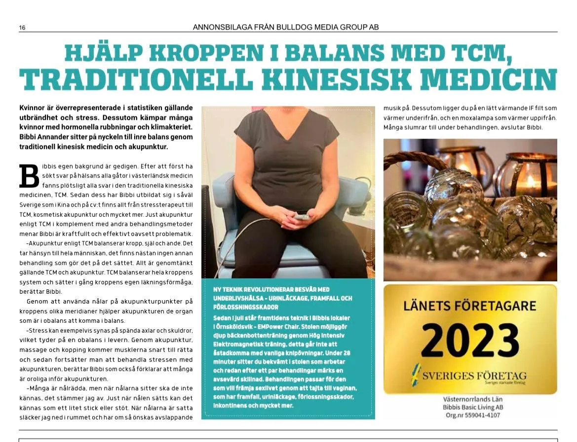 Efter att vi har gått igenom konsultationen och identifierat ditt problem, förbereder vi behandlingen på EM Power Chair. Denna behandling är helt smärtfri och icke-invasiv och utförs med kläderna på. På 28 minuter tränar EM Power Chair upp musklerna i bäckenbotten, vilket motsvarar över 12 000 knipövningar. Detta förbättrar bland annat urininkontinens, bäckenbottenmuskeln, läckage, förlossningsskador och nedsatt intim tillfredsställelse.