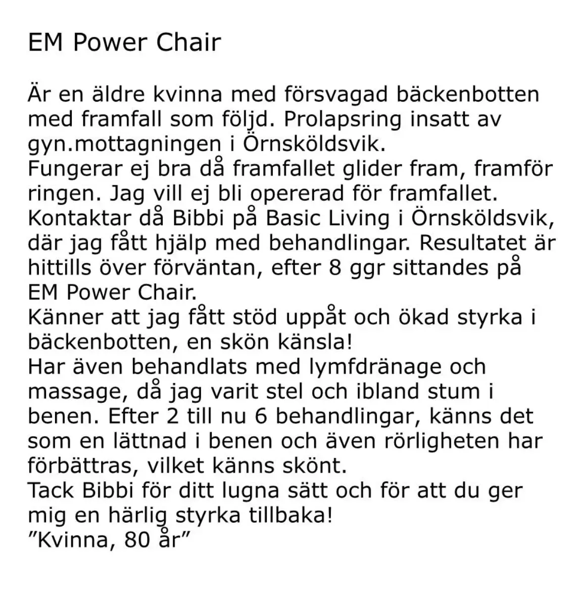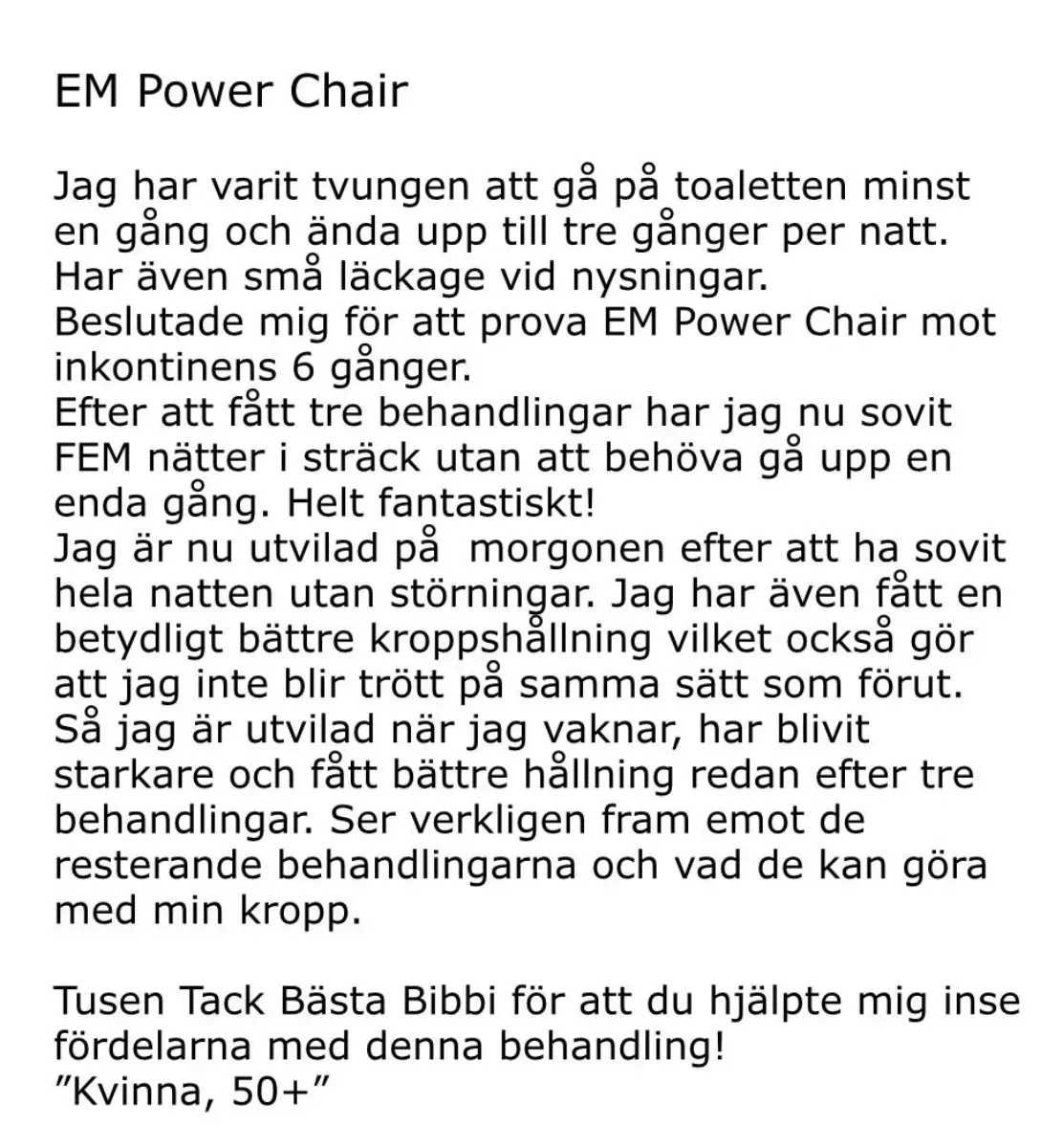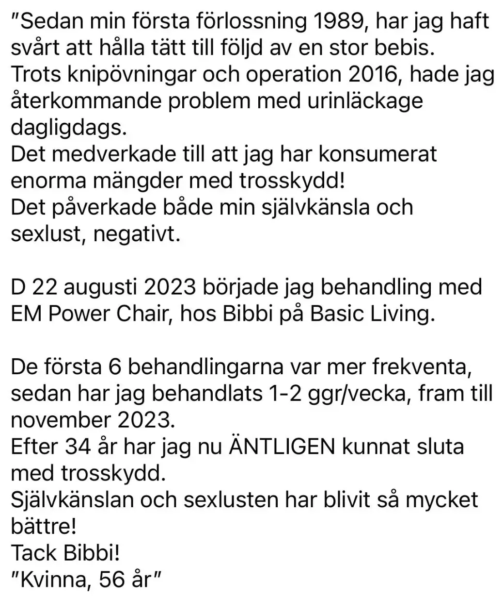 EM Power Chair hjälper dig att förbättra kontrollen över blåsan, tarmen och ökar din sexuella tillfredsställelse. Behandlingen är enkel, effektiv och livsförändrande.